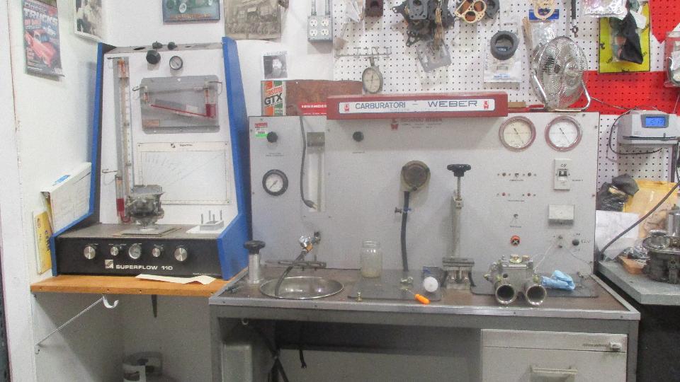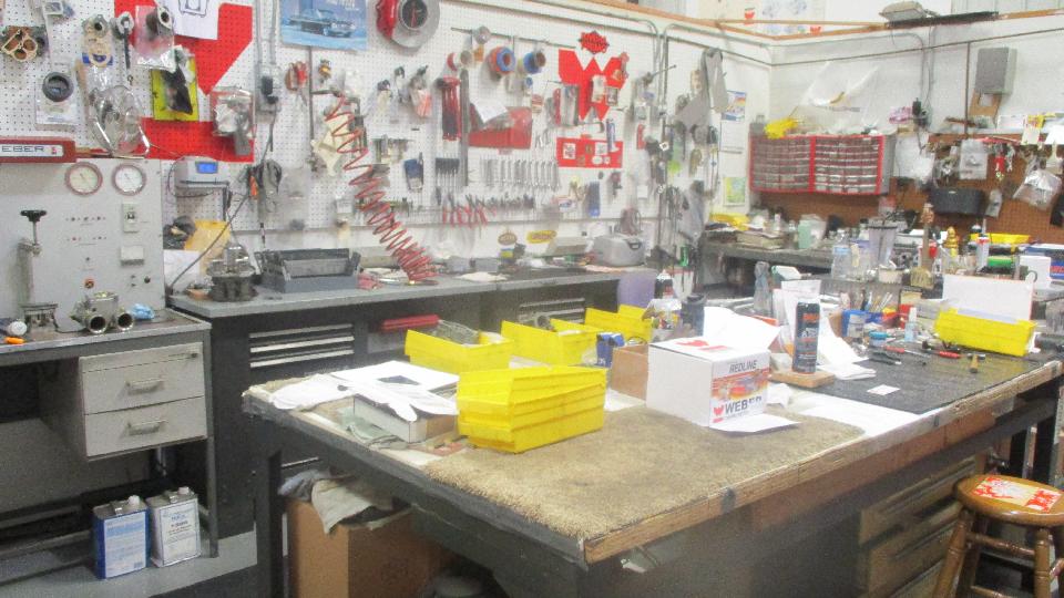Carburetor rebuilding area, the flow bench, and part of the machine shop.