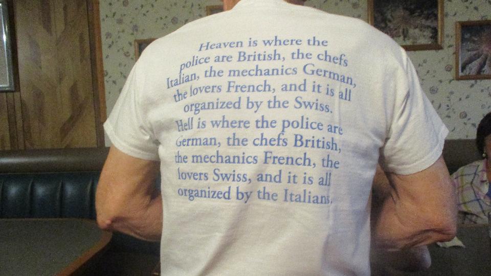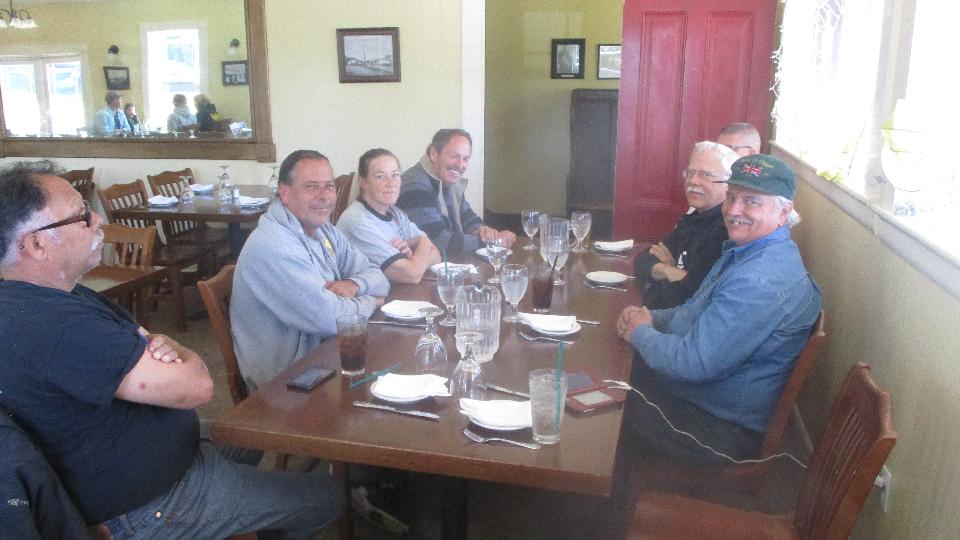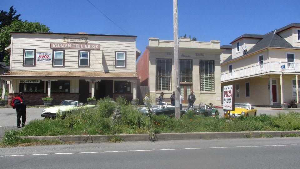 Where we were going we didn't know, and there were no route instructions. In fact they were choosing where to go and what route at time of the drivers meeting. So we just fell in line to follow the leader and enjoy some nice side roads, all paved (sort of), some a little rough (all in good fun), and lots of hills and twisties. I was busy driving, and navigator was busy being negligent, so no pictures. We ultimately arrived for lunch at William Tell House in Tomales, next to Not A Bank (you figure out what it was before rearranging the lettering). We had seven LBC's and eight people for lunch, meaning seven empty seats and all solo warriors. Food was moderately expensive, and service was slow, so maybe they won't go back there again.