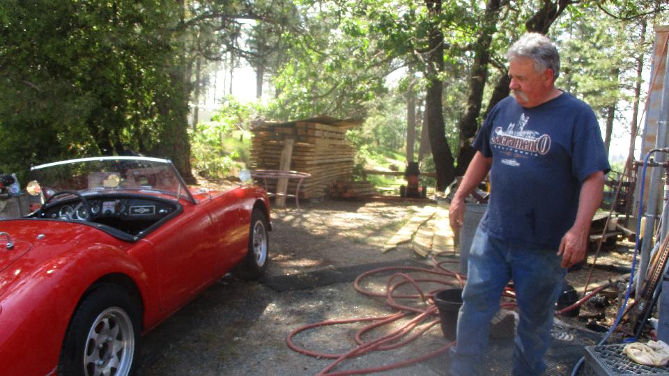 Stuart Mast at Brice Station Winery at 3000-ft altitude in rural Murphys, CA. (Besides, I heard there may be an MG TF in need of a little help). We were here two years earlier end of May, and again early July 2015. Not just wine here, but they also make pottery, and they manufacture pottery clay for sale (lots of it). There is also a blacksmith shop that run runs classes twice a month (just in case you want to make horse shoes or your own car parts). And they will hold a music concert here occasionally. As we arrived Stuart was washing his daily driver MGA.