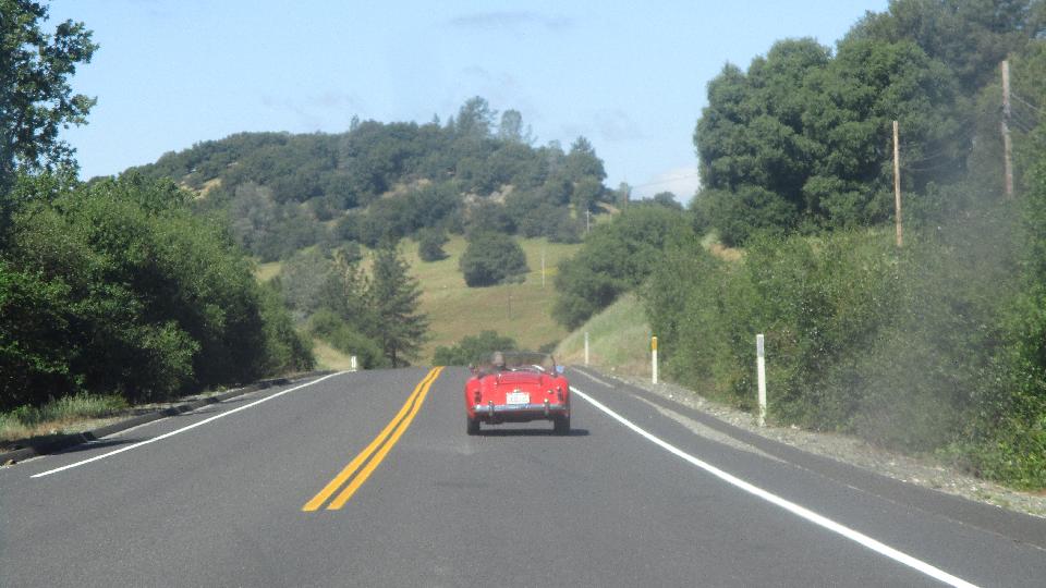 Just as we were leaving in the evening we finally got to meet the mysterious lady who owns that MG TF. Then as we were rolling out of town the MGA has a lot of cough, sputter, pop, and we had a short delay to install a new condenser. Imagine that, two condensers in one day. For the Mallory Dual Points distributor the condenser is on the outside quite easy to change, then on our way again. Jolly good fun driving down through the hills and twisties getting out of the mountains. We were a few hours off heading for somewhere north of the Bay.
