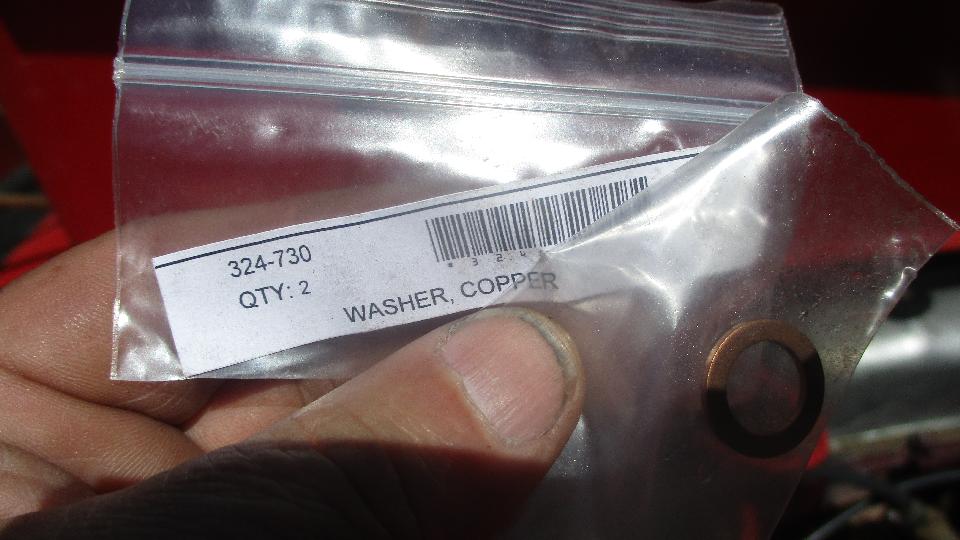 First complaint was losing coolant at an alarming rate. Radiator cap and hoses looked okay, so top it up with coolant and warm up the engine. In a few minutes it was obvious the drain cock on side of the block was leaking around the base (not through the valve). I turned it half a turn with my fingers until it was upside down. The valve had been installed with a rubber O-ring and was likely never tightened. The car had been serviced by a "pro shop" in the big city recently, so we figure there may be not much professional about that place. The magic trailer yielded a new copper seal washer, this one for a brake hose, just a smidge too large but it will work. Push the car outside (before losing fluid), change the valve seal washer as quickly as possible, top it up with coolant, and we took it for a drive.