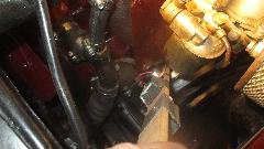 Richard has a novel home built tool comprised of a battery powered WiFi camera with a pair of illumination LEDs on a stick. Coupled with a large video screen on the wall, this device can peer into some confined spaces, here shown checking the engine series number on the side of the engine block, also good for looking up behind the dash panel.