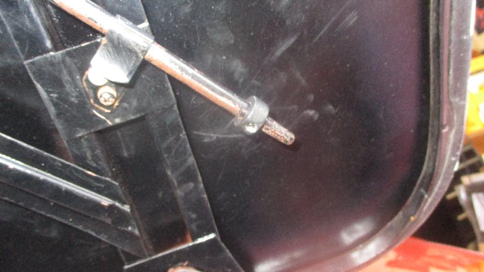 Easy day today with just one appointment with Richard Rocco in Alameda, CA. He and his son conspired to buy an MGA about a year ago. It is a nice 1959 MGA with a few odd changes. From the body number and chassis numbers it is an early 1959 car with the original 15GB engine and correct high starter gearbox. But it has 1600 type tail lights, turn signal relay box has been removed, and a replacement 1600 type wiring harness. It has 1600 type raised reservoir cover on the master cylinder, but still has drum brakes up front. It has vinyl covered dash panel (with no lower edge trim strip, obviously an aftermarket modification. Another mystery, it has tonneau cover studs on top of the doors, which were supposed to have been deleted somewhat earlier in production. And there is the later style battery cover with the front edge raised flange (handle), even though it still has the earlier original style convertible top frame style. Kind of a bitsa car, but very nicely done, now red but intended to switch back to original black body color. Photo at right below shows another solution to raising the boot lid prop rod for better head clearance, a shaft collar with set screw to block the prop rod up higher. The car didn't need much, just a small carburetor adjustment when the rear carb was running far too lean.