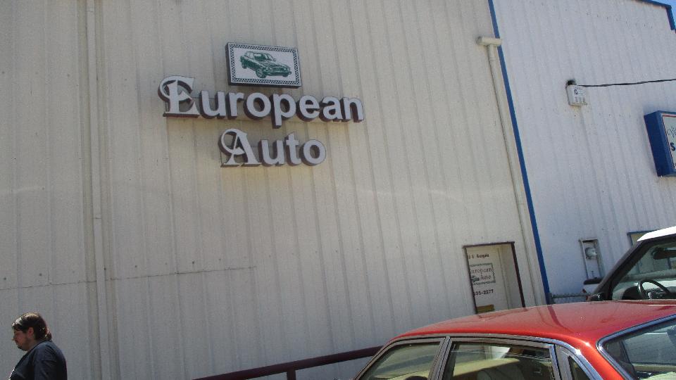 at 4160 ft altitude, followed by 6% downgrade for 5 miles (stay away from the truck escape ramps), watching the temperature gauge drop some. But from here we were in the central valley (think hot). Shortly divert onto CA-99 north heading through Bakersfield (100 miles from nowhere, 10 feet from Hell). Our first programmed stop was European Auto in Visalia, CA. Around mid day the door was locked. Bummer. Make the call, leave a message, and hope for a call back.