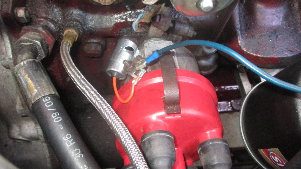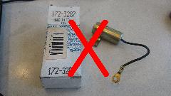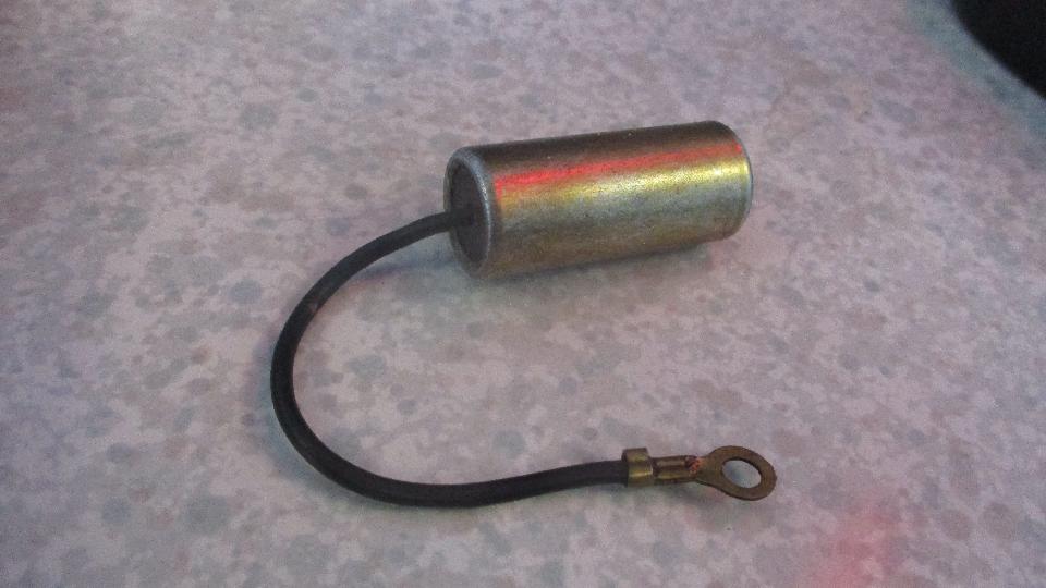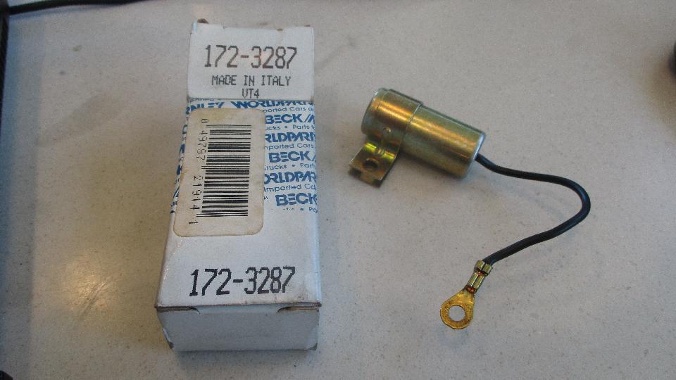 with a Lucas condenser DCB101C, because that's what I had on hand, and it fit into the P-clip on my Mallory distributor. I have one more in the trailer, and we are a day and a half away from another shopping trip to Moss Motors. I may have to start a drop-dead life expectancy list for condensers like I did with hydraulic brake light pressure switches.