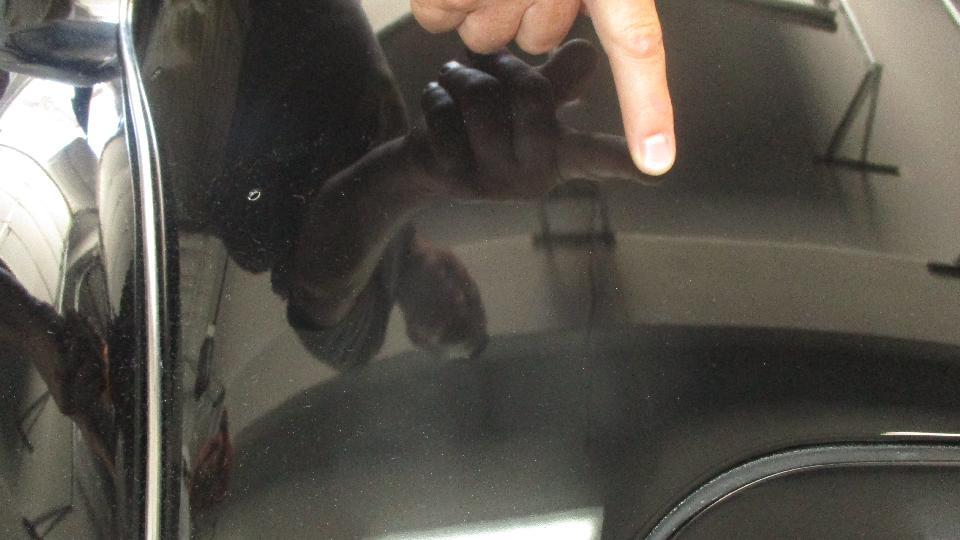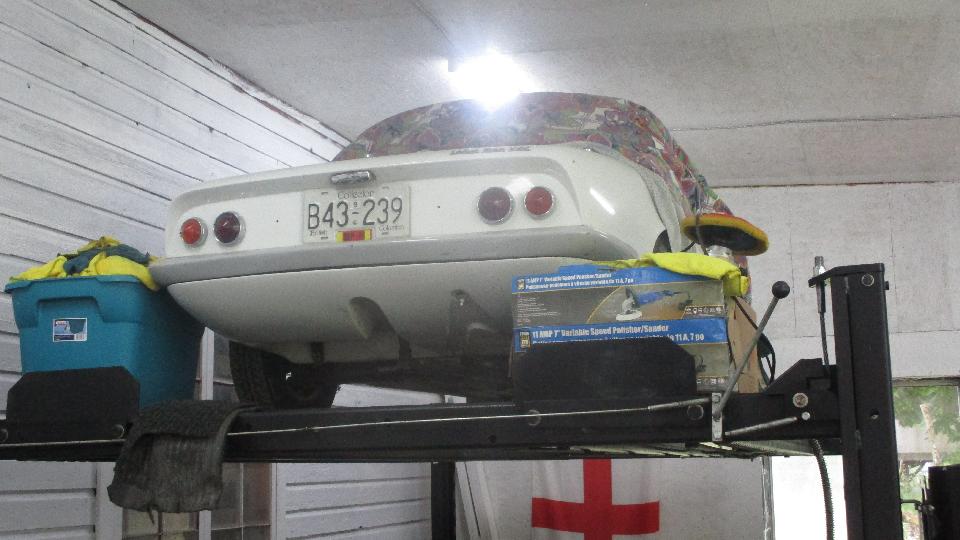 A number of holes in the body had been filled and painted over, some of which may have been in the wrong locations. Otherwise we think the bondo can be poked out to clear the holes for rag top fasteners and LTD studs.