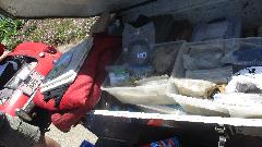 Then we had time for a little trailer maintenance. Seems like over night in the motel parking lot someone backed into the trailer, bashed the right side fender, and knocked the Bearing Buddy off of the wheel hub. Bummer. One good yank pulled the fender back into reasonable shape, but we couldn't find a grease cap that would fit the small trailer hub. A little plastic baggie and a tie wrap will have to suffice for now. Put a new Bearing Buddy on the shopping list.