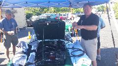 Easy analysis, then second car loaned us a tow strap so we could haul the disabled car about four miles back to the hotel (where I had parked my trailer with the parts and tools). By the time second car had done a car wash to remove the coolant spray and returned to the hotel, we had already installed a new core plug and topped up the coolant. Meanwhile half a dozen people were enjoying the impromptu tech session on how to install a core plug. Then on to the hospitality suite.