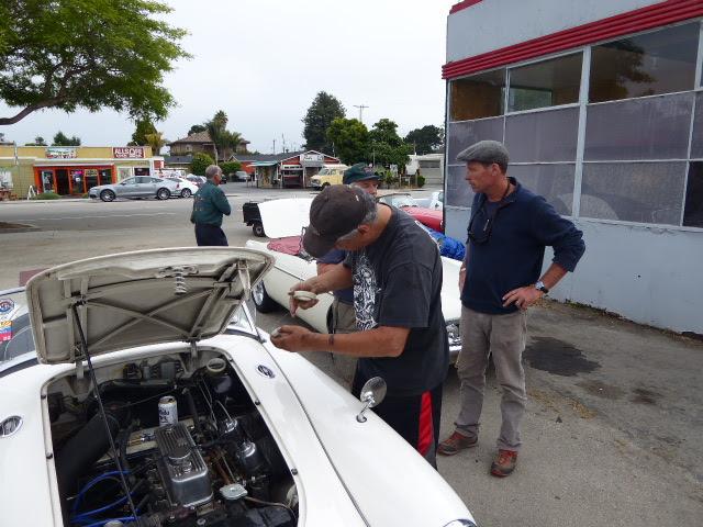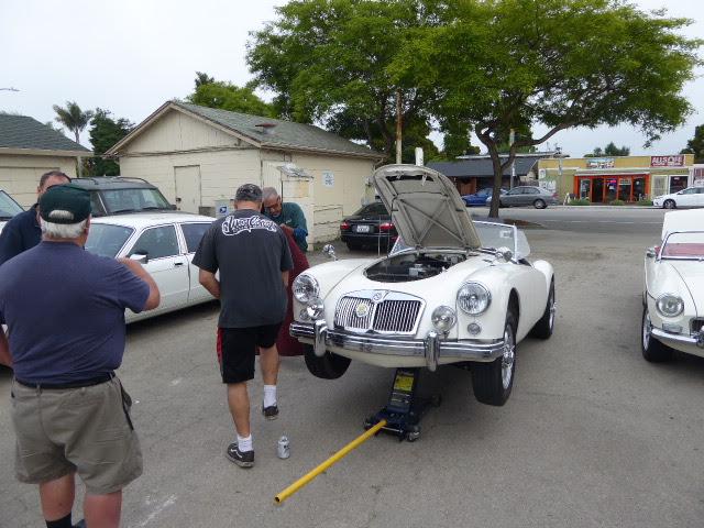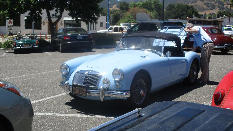 a personal cool-down stop in Lompac, CA. A good move, as we found another WIFI spot with wall power. From there another hour run down the coast for an evening visit with Andrew Flanagin in Santa Barbara, CA. Andrew has a very nicely restored MGA Twin Cam With original engine, and he loves to drive it.