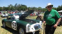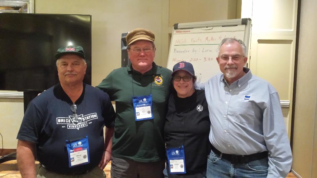 Kelvin Dodd from Moss Motors was chatting about history of MG Car Company from its roots and inception up through the evolution of MGAs. There followed a fair amount of interactive questions and comments in short order, and a requested photo opp. From right to left, Kelvin Dodd of Moss Motors, Cecelia Bruce of Scaroboro Faire, John Twist of University Motors, and yours truly of MGAguru. For MGA enthusiasts, this is sort of the parts and knowledge center of the hobby.