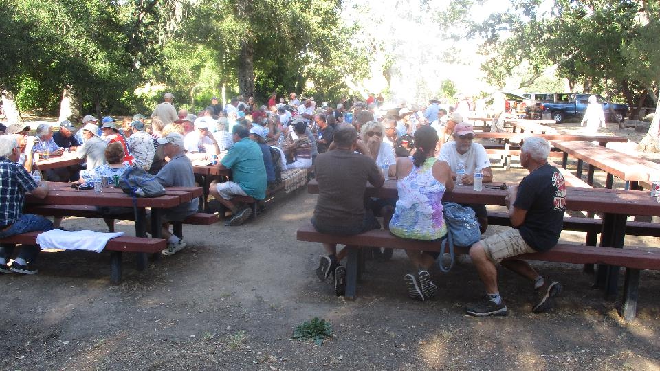 After the car show there was a 3rd Wednesday city event in the local park, vendor room open, and a chapter contacts meeting, all set aside in favor of a little cool down and chat time. Then we were all off to a BBQ at Nojoqui Falls Park, several miles out of town, a jolly good social indeed.