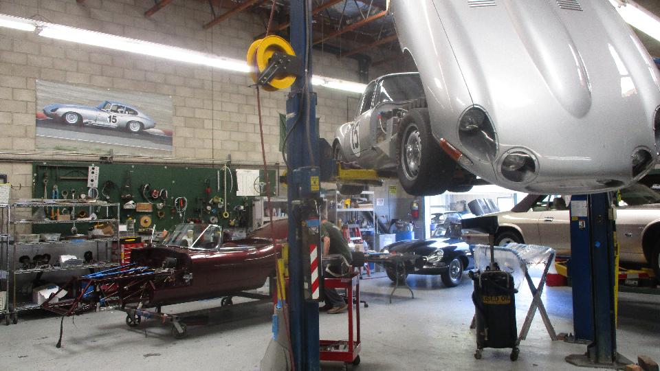 Did I say it was mostly Jaguar? Notice photo on the wall and car on the lift. Full service and restorations here.