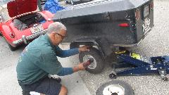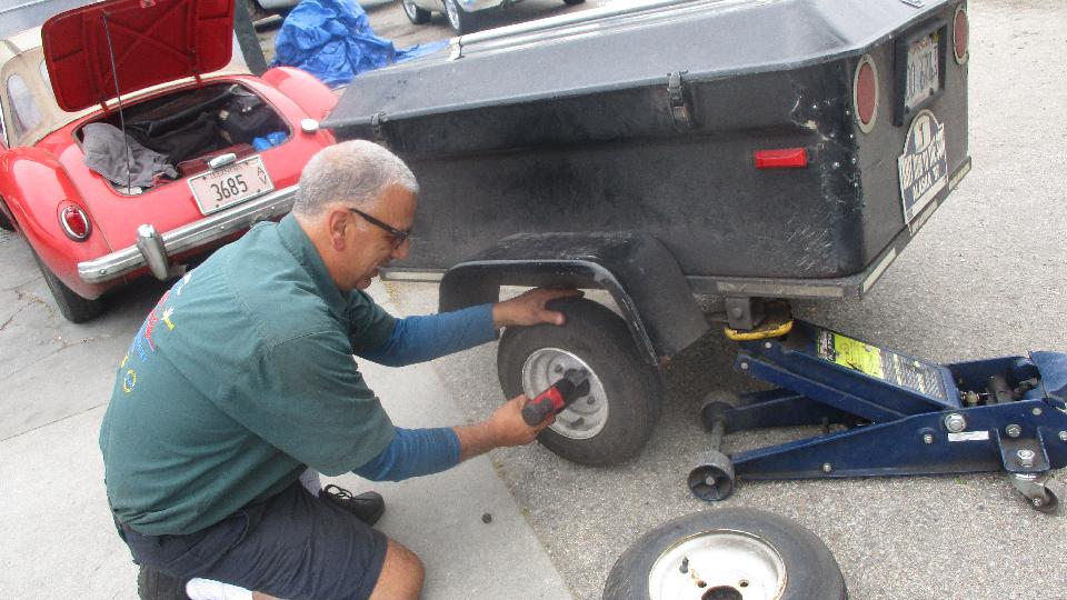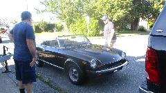 We had a stop at a NAPA store to pick up oil filters and a new Bearing Buddy for the trailer hub, and back to Bruce's place for a quick installation. Then Bruce's son showed up with a friend and a nice Fiat 2000, late 70's vintge.
