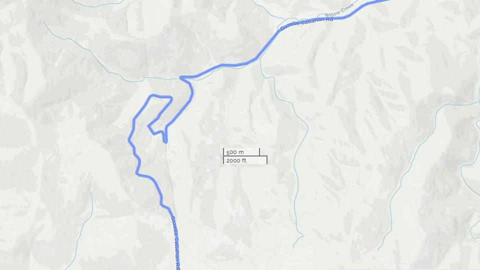 Hills getting steeper in this neck of the woods, 8% grades being common (and a few slightly steeper). Bugs abound. Three fuel stops in one day, sunset getting later every day, good visibility late night, so we kept driving. Last fuel stop in Good Hope Lake, BC at 9:45 pm. 15 minutes later and we would have been sleeping here for the night. This place was spotted by Garmin GPS from more the 200 miles away. What you see is what you get.