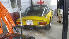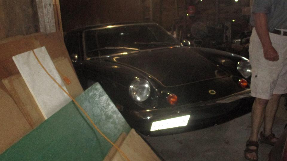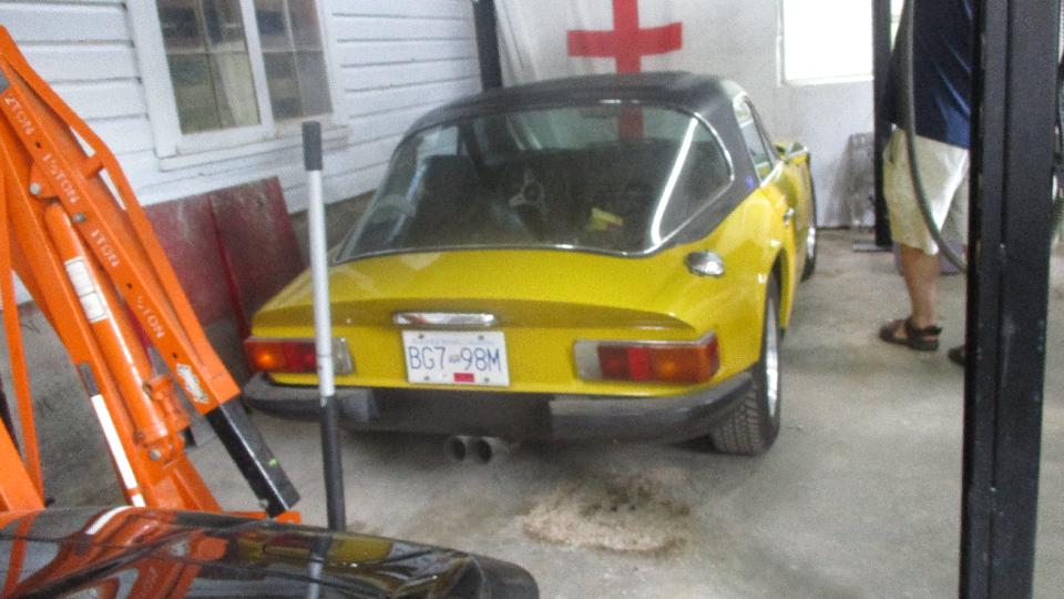 The yellow thing is an early Lotus Elan (although it does have four bolt wheels), followed by a slightly later Lotus Elan on the rack, and a TR8.
