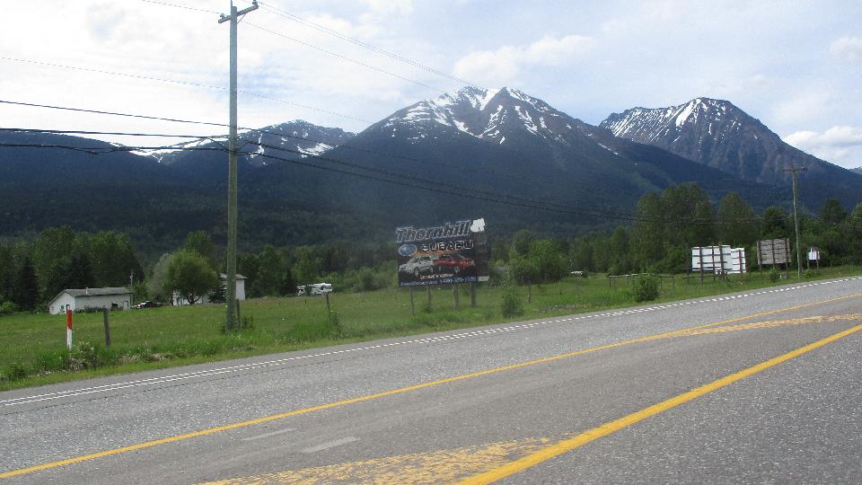 A short pause in the morning to pay up my car insurance for the next year (nice trick via the internet with no snail mail). Quick stop to pick up motor oil and a few supplies. Then it was travel day, heading north. British Columbia is a nice place (once we got out of the city), plenty of mountains, long roads, thinning traffic, being careful about where to find fuel stops. Enjoying the cooling weather and higher altitude. TC-1E 150 miles, Caribou Hwy/BC-97 200 miles, continue BC-97 about 75 miles to Prince George, 430 miles by day's end, second fuel stop here.