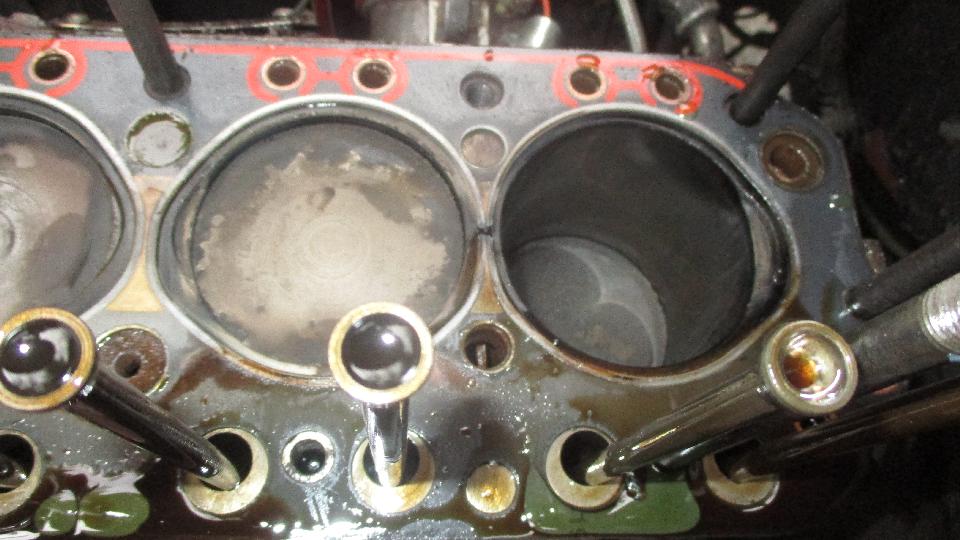 Stopped for fuel and bolt check, and discovered blown head gasket (between 3&4 like 2 months earlier). Two hours to R&R the head to install new gasket (last hour in the rain), navigator getting better with wrenches and repairs. During this process I noticed the "new" exhaust manifold was shrinking end to end so it was difficult to remove and would not go back on over the two end studs until I filed out the end holes a bit. Not particularly surprised, as the old original manifolds did the same thing. I just hope this does not eventually lead to cracking the manifold (a common malady). Soldier on.