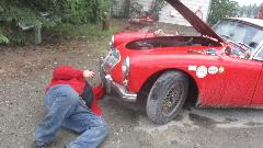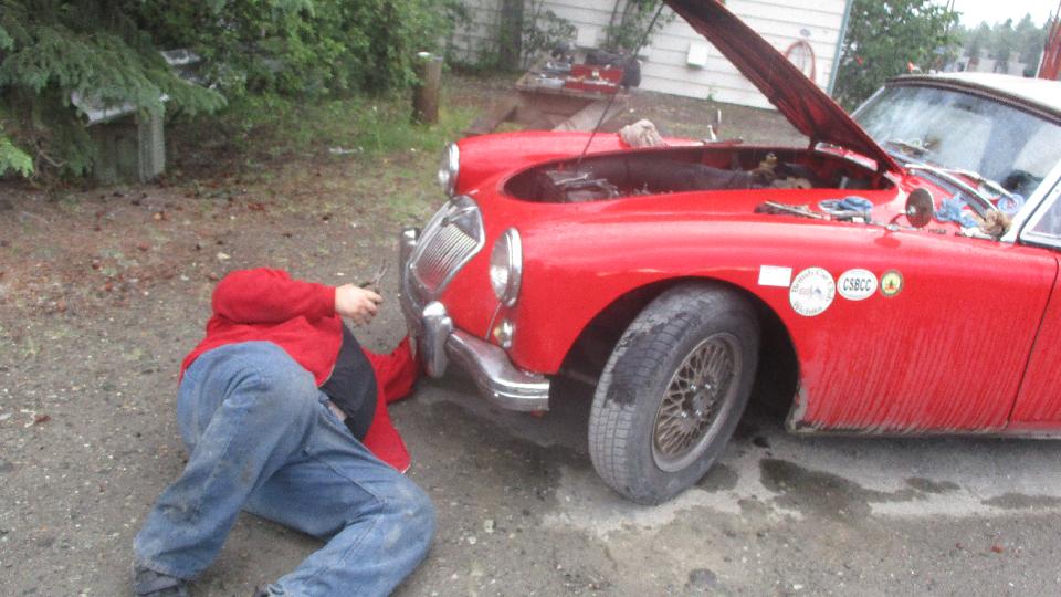 We crossed the Canadian border at Summas/Abbotsford at 9:30-pm. By 10-pm we landed in Chilliwack, British Columbia to visit Bruce Webster who has a 1959 MGA which he bought disassembled, now including 1800 engine and overdrive gearbox.