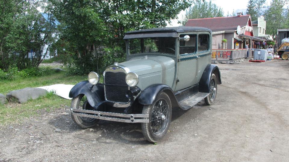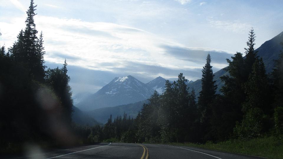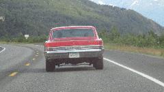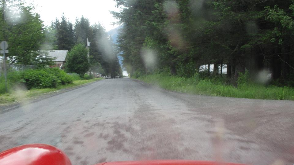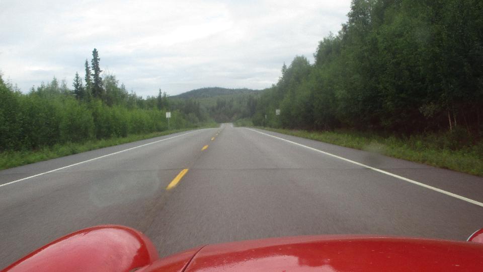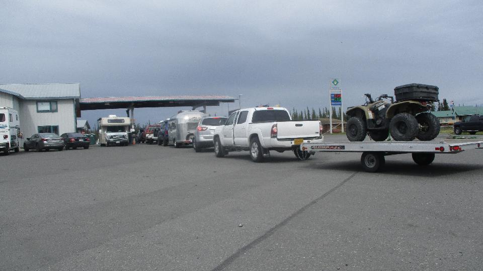 Prolonged fuel stop in Glennallen, AK with long lines at the pumps, chance to check shock bolts again, adjust heater valve control cable, tighter clip for bonnet prop rod, check water and oil, refuel, grab lunch for the road and haul on. When the territory is hundreds of miles with no appointments and late night daylight, it's easy to just keep on driving. Arrived at friend's house in Anchorage, AK 7:15 pm, about 355 miles for the day, easy compared to the day before. 2145 miles in 4 days, arriving a day earlier than originally planned.