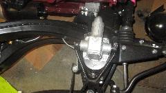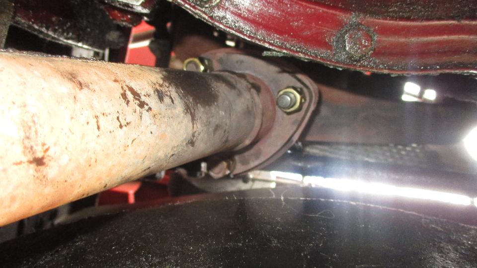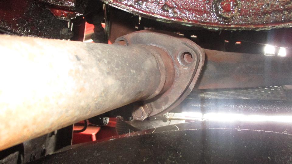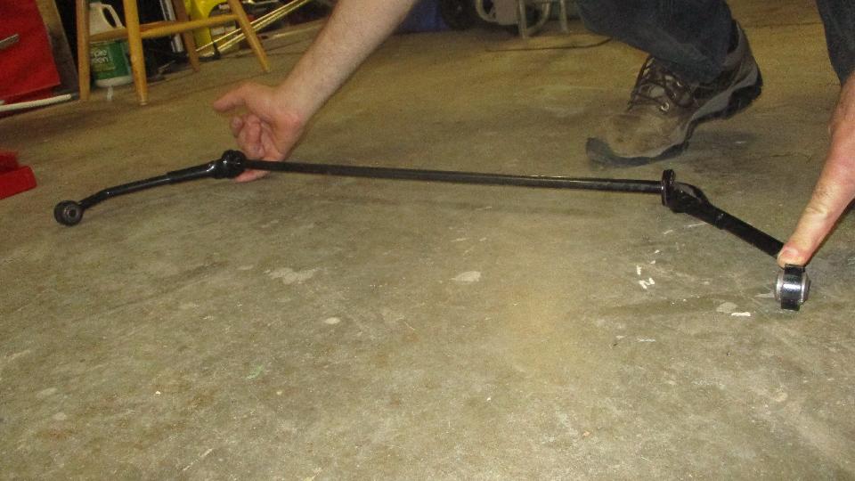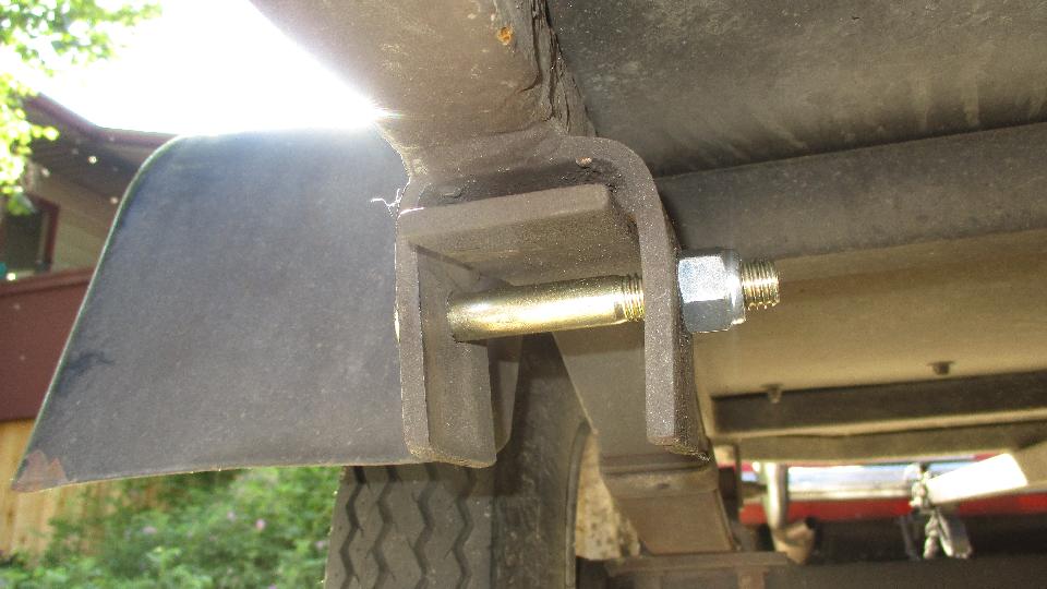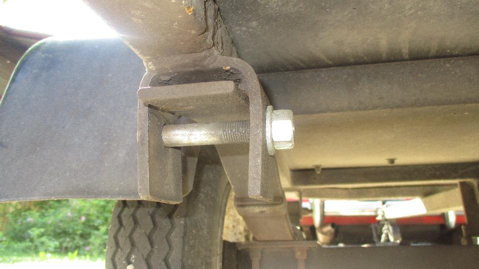 I had new studs, but studs as original are awkward with the inner fender obstruction (especially on the inboard side). A short trip to Ace Hardware brought us new grade-8 coarse thread bolts for the shocks (and longer bolts for the trailer spring shackles while we were there). In short order everything on teh car was reassembled. Golden opportunity to lube the four Zerk fitting on the swivel links.