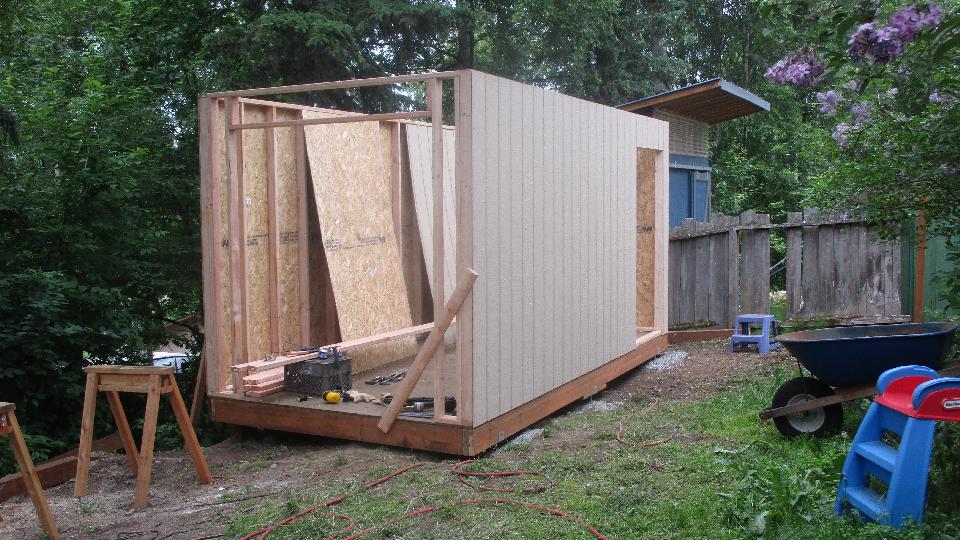 Del's new house is lots bigger than the old one, but you know there's never enough space. He is busy building a storage shed in back to remove "stuff" from the garage/workshop space.