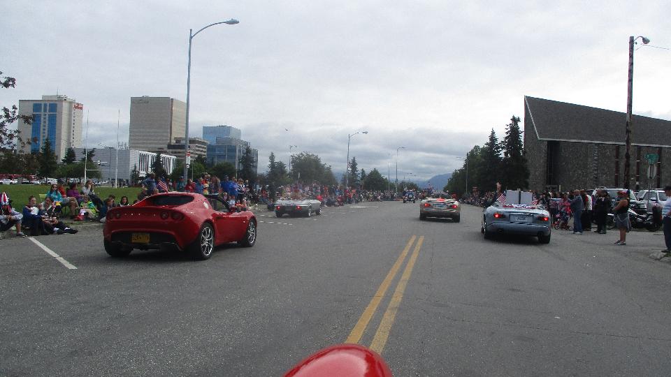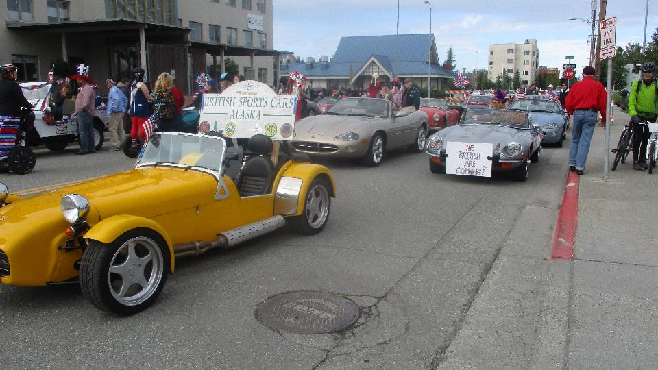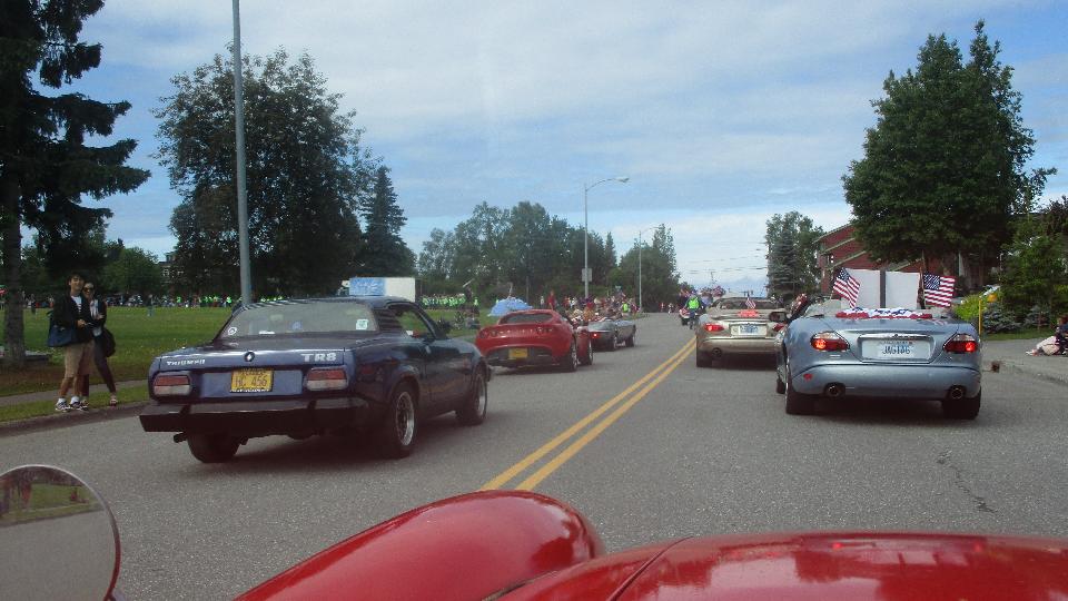 Up early for breakfast, and staging the cars for the Independence Day parade in Anchorage, Alaska. The club British Sports Cars Alaska had several cars in the parade (as well as our MGA).