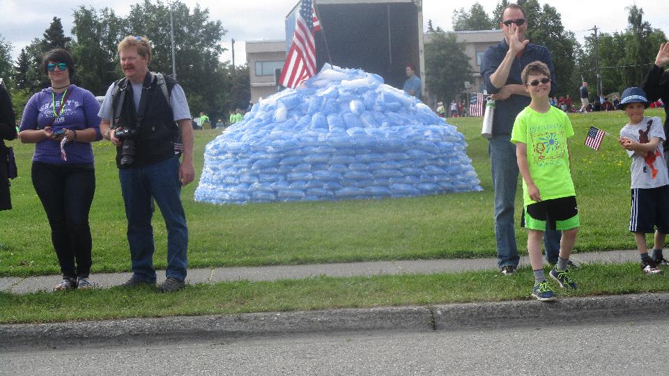 The igloo was compliments of the local ice company. Last photo was a turn about half way around the parade route, people several layers deep everywhere.