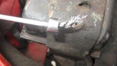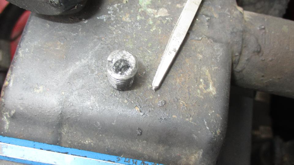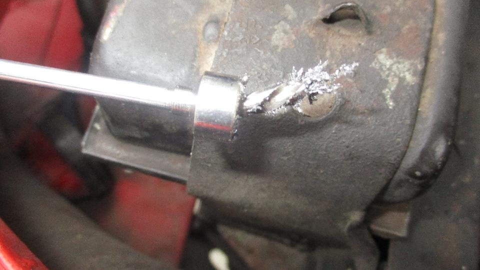 Just a couple minutes to install the new 3/8-18-UNC Heli-Coil, get it screwed in to the correct depth, and knock the drive tang off the bottom end. Then we went after the broken stud.