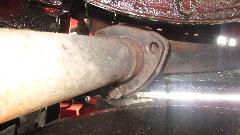 While it was jacked up I went after a loose pipe connection to the exhaust manifold (one missing stud and more missing nuts with only one secure stud). Installed one of the spare shock studs, which was previously left over from soft mounting Twin Cam carburetors (don't throw anything away). Del suggested a touch of high temperature thread lock adhesive. This stuff is Rocksett Engineering Adhesive 15014 from Flexbar, a water based adhesive temperature resistant over 2000dF. Let it air dry for a while, or heat to 175dF for 15 minutes. I recon the first heat cycle of the exhaust system should cure it. If you can't remove the screw or stud later, try soaking it with water for a while. New hex nuts, double nutted and jammed tight together hoping they may stay put better this time. Tighten bolts for the pipe lateral brace strap, and call it good to go.