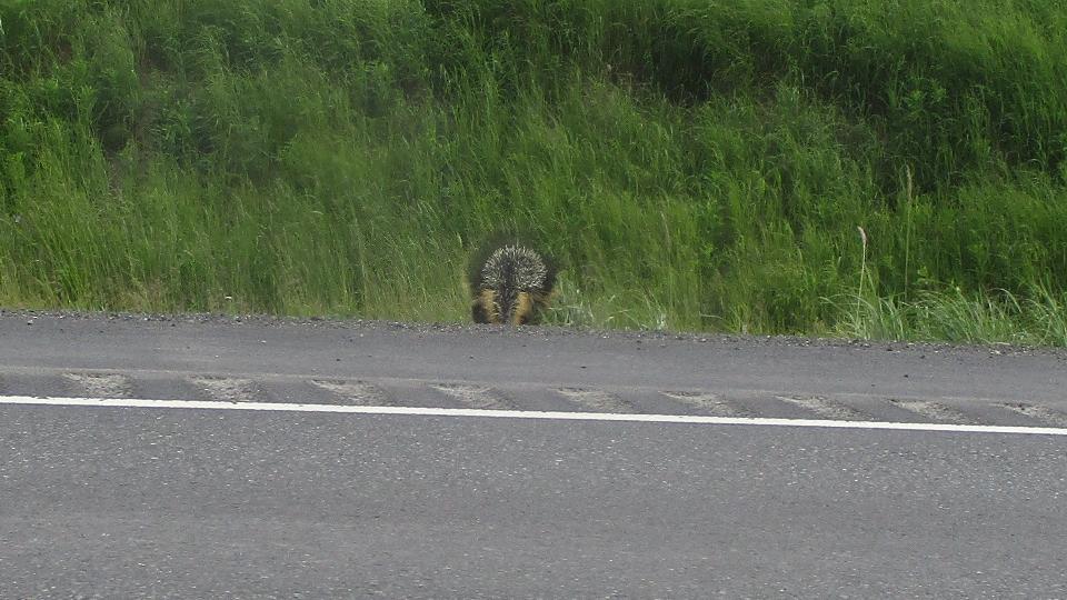 This fellow took me by surprise. It was a very large porcupine seemingly "playing" in the middle of the road, but by the time I grabbed the camera