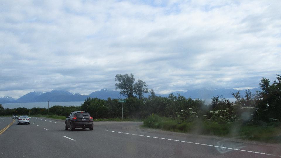 all I got was a picture of his rear end hauling off into the the grass. Then approaching Homer a nice picture of mountains across the bay, in afternoon daylight this time.