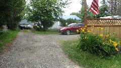 By morning light I noticed a dented trailer fender and missing Bearing Buddy (same one that got whacked in a parking lot a few weeks earlier). Now I recon there is a Moose out there with one lame leg. Well, we had another spare Bearing Buddy so put that one on and pumped some grease into it. Pulling the grease nozzle off of the bearing buddy, the Zerk fitting came out. Turned out to have no thread on the Zerk fitting, just some concentric barbs to be press fit into the plastic. Bummer. Put another Bearing Buddy on the shopping list, and make it an all steel part next time. Also another bumper and overrider on the next parts order.