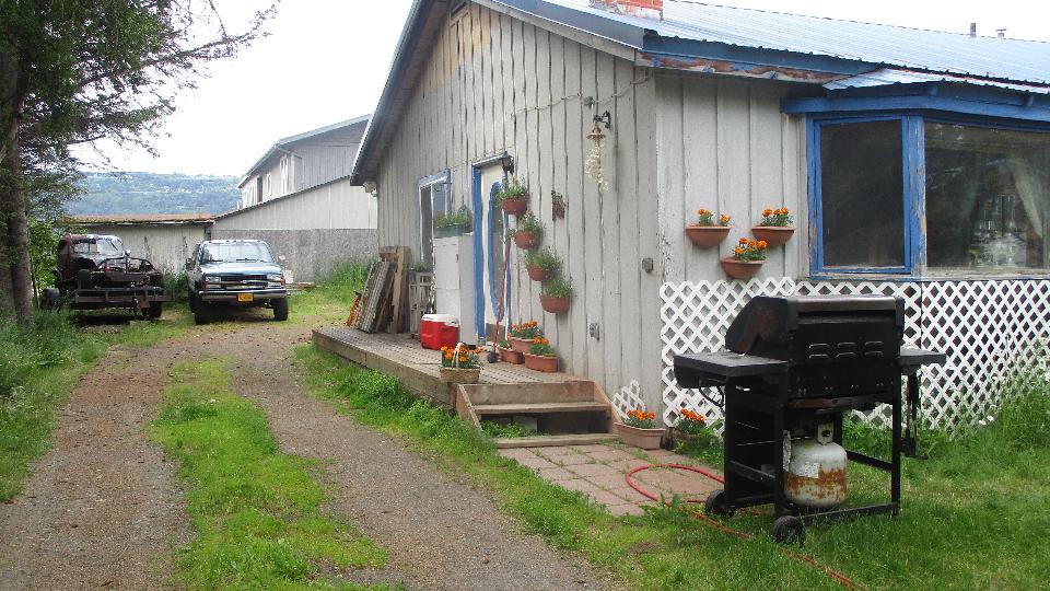 Then the primary reason we came to Homer, to visit Bay Avenue Garage. A little tricky to identify the location with no number out front but logically located between some other identifiable places. No one answered a knock on the door, although it looked like it should be occupied. On side around back, not visible from the street, we found the business sign where garage space looked like maybe it had not been used much for quite some time. Combined with the only known phone number being out of service we will conclude that this shop is now defunct. Bummer.