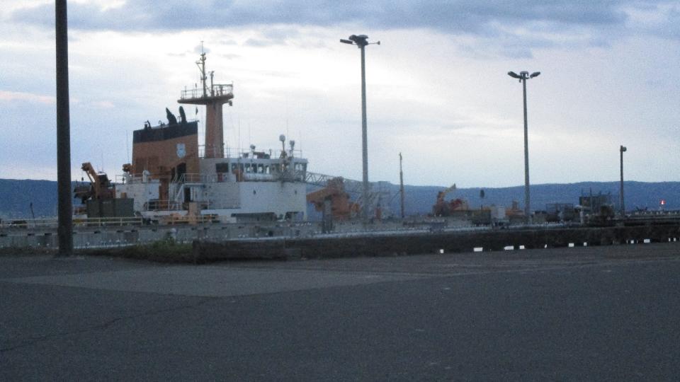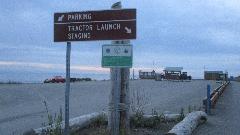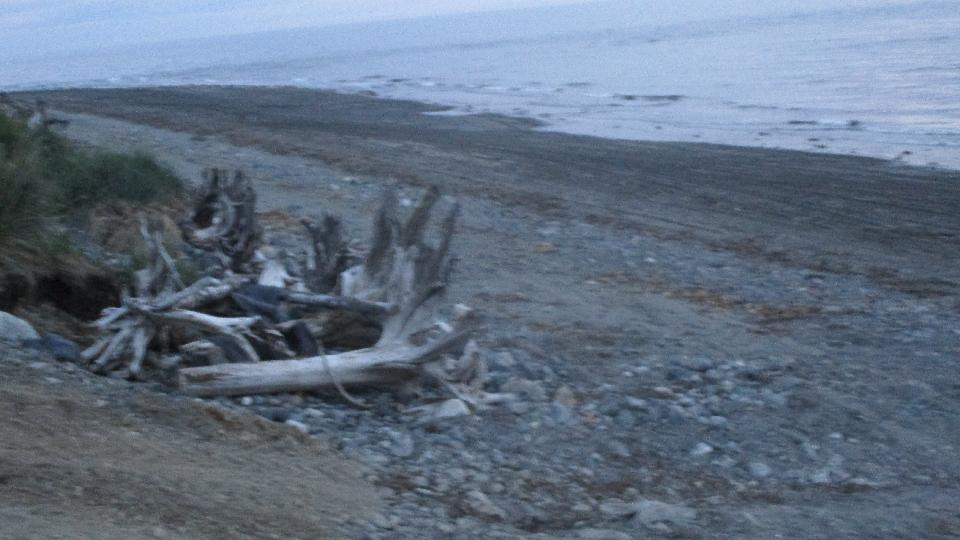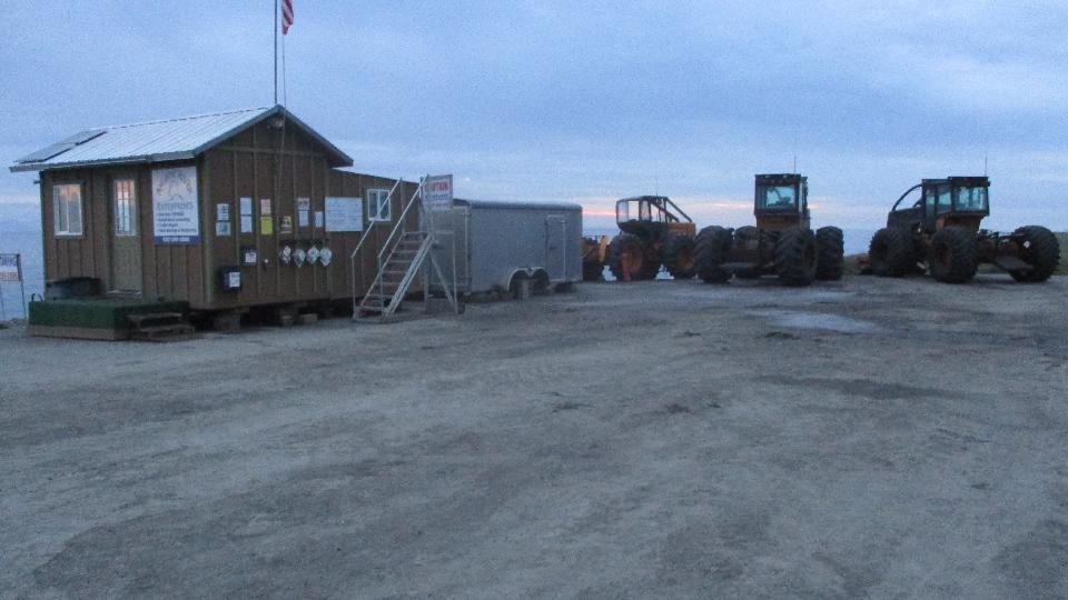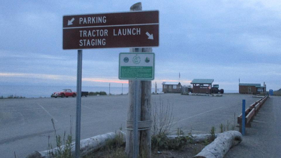 After a quick visit, turn around and head back, places to go, things to do. 21 miles back up AK-1, hang a left for a mile on Anchor Point Road, to find Anchor Point, the farthest point west that you can drive in North America. The tractors are used for boat launching down the steep embankment leading to the beach. Last time I was here there were a bunch of sea birds doing a line dance on the beach (but that was daylight rather than midnight).