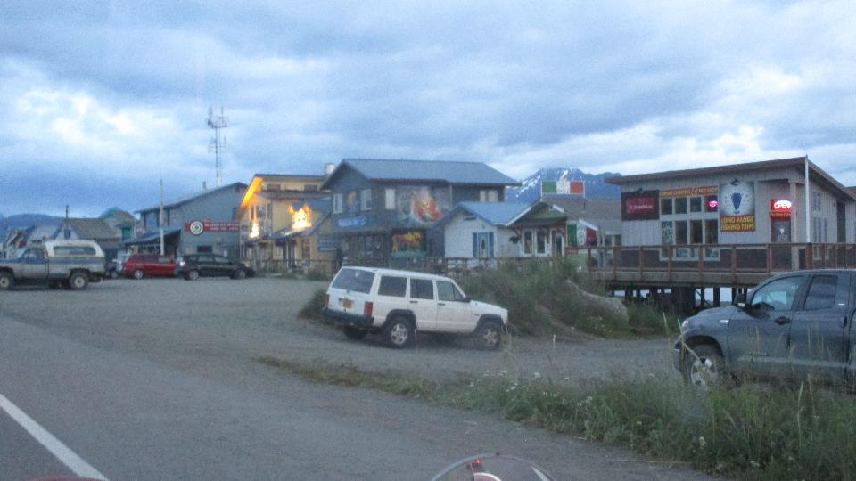 After dinner break, at 11-pm we headed out to Homer Spit, several miles farther on, and end of the road with the ferry docks. Most notable here are the over-crowded RV parks, followed by restaurants and other tourist traps along the road.