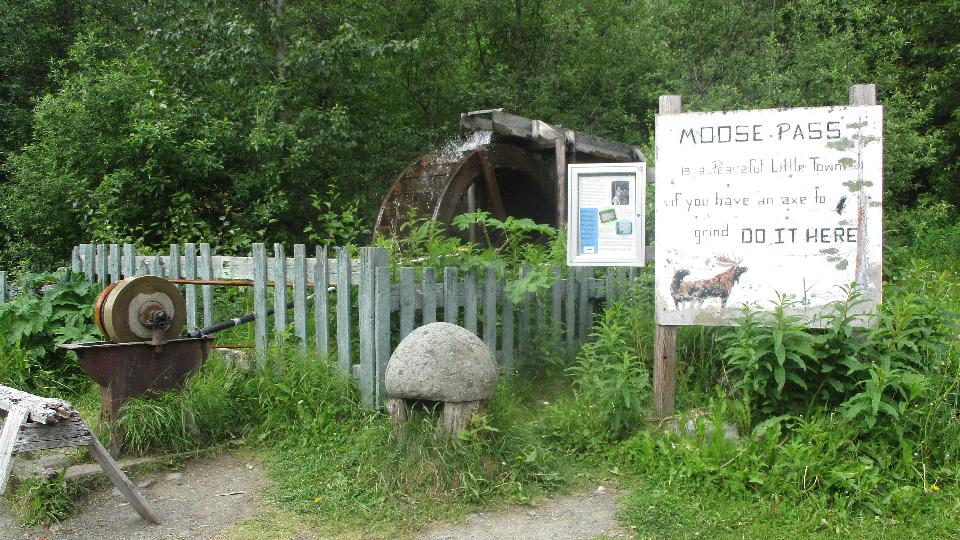 Stopping for a late morning lunch break in Sewart, we found Martin Walters from British Sports Cars Alaska. We figured he was out here somewhere, but didn't think it would be that easy to find him. On the way back a short stop in Moose Pass, the "Peaceful Little Town". This is the same whetstone that was here 20 years earlier.