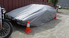 Quick breakfast and morning catch up on yesterday's photos and notes. Today is supposed to be 70dF and partly sunny, so must be car maintenance day. We picked up a few supplies at O'Reily Auto Parts on the way back to Del Rawlin's place, where Del was already busy hauling out a nice workbench, a floor jack and jack stands.