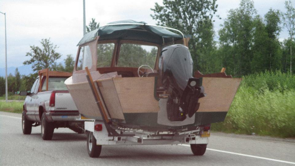 On the way back to Anchorage we ran across this very nice all wood boat. I don't know if it may be new or recently restored, but it appeared to be all fresh as though it had never been in the water. Outbound on the Kenai Peninsula, it may have been heading for its maiden voyage. At first glance I thought it might be one of the Alaskan built clones of the Healey Sport Boat, except this on is an outboard model a bit smaller. No name on it that we could see with the fly-by.