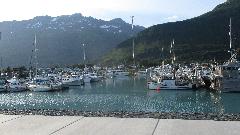 Whittier is mostly a large harbor with docks for fishing boats and the car ferry that runs between here and Valdez. Not sure if cruise ships come here, but the hotel is pretty big. We will remember this place as home of the $17 hamburger. Last trip up here in 1997 we tried to hop the ferry from Valdez to Whittier, but without a reservation they came up a few feet short on space for the MGA and trailer. Not going to try it this time, since the ferry is done for the day, and we don't want to kill the time waiting (bad timing). So back through the 6-minute tunnel.