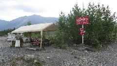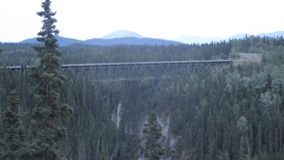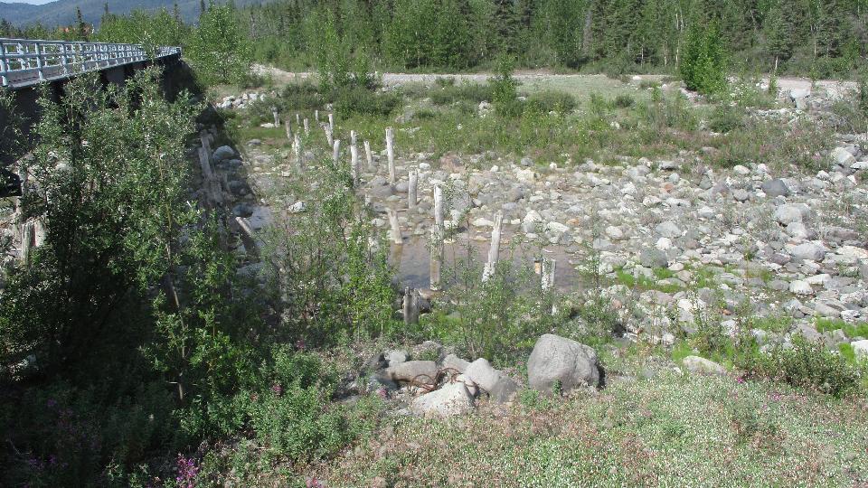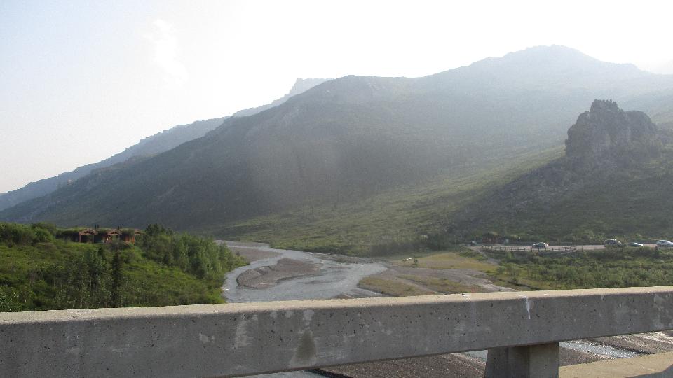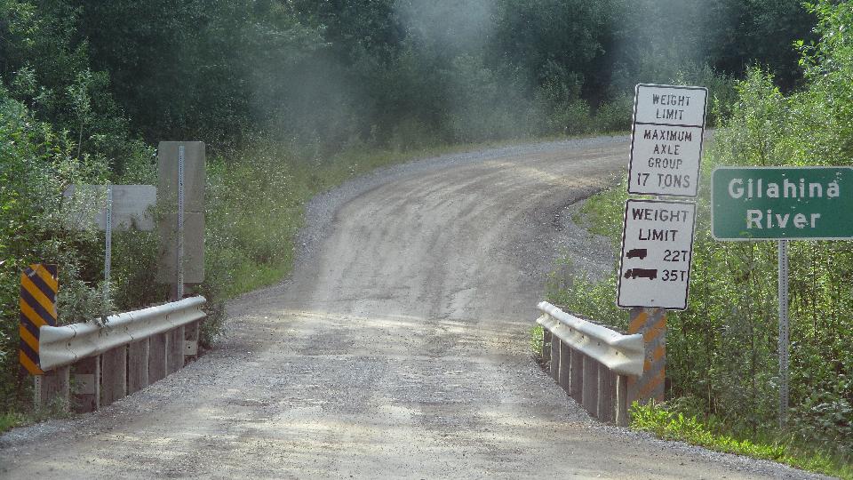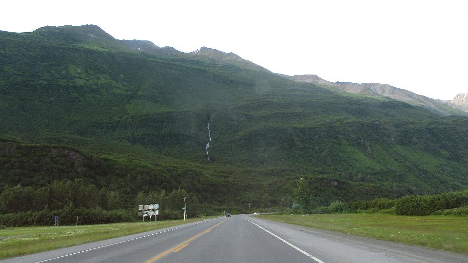 Something I didn't notice the night before, and I didn't notice being here 20 years earlier, was guard rails. Huh? From my trip here in 1997 I was under the impression that there were no guardrails anywhere in Alaska. Maybe it was related to all the side roads we ran at at that time. In any case, the notable thing here is that there is hardly 20 feet of guardrail anywhere that has not been thoroughly smashed. Sure, icy roads may be difficult here much of the year, but doesn't anyone take responsibility for their own welfare? It looks like a pinball machine.