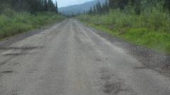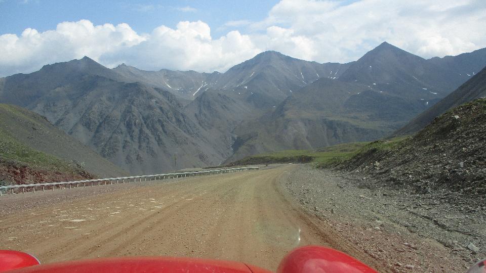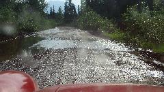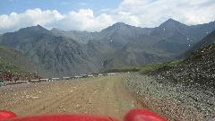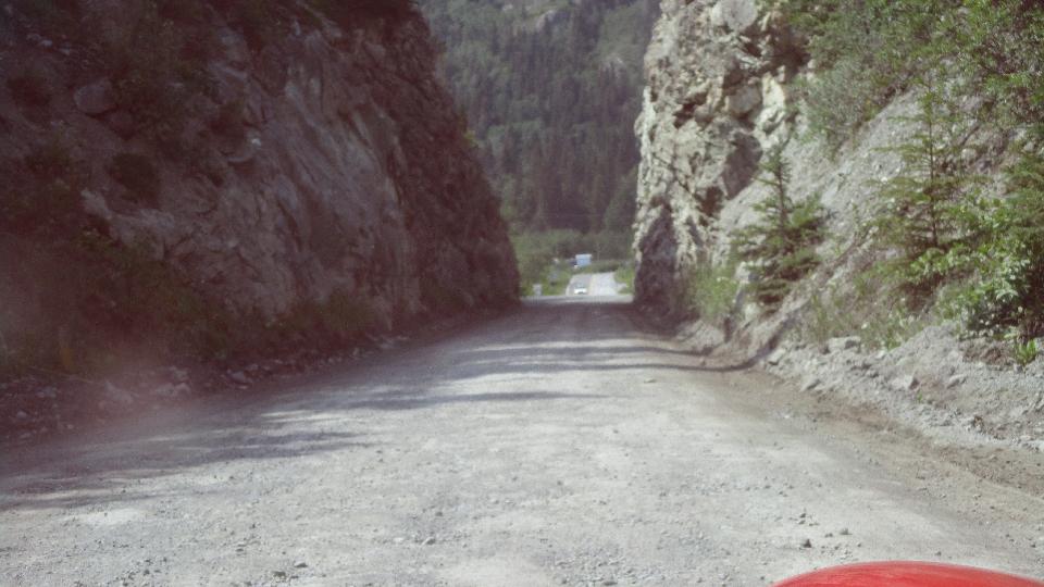 Very rough going, but we did a tad better on the retreat run, 2-1/2 hours for 61 miles of ratty gravel road. Pretty sure p/u trucks and jeeps can do in under two hours, but at least we didn't break anything, again. The final cut through the mountain lets you out into Chitina where you get a very welcome 30 miles of pavement back to the main highway.