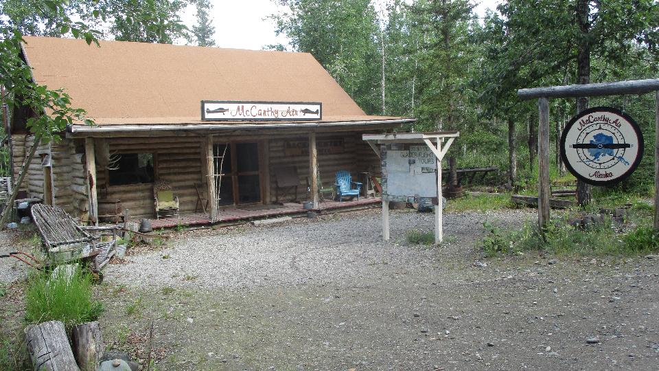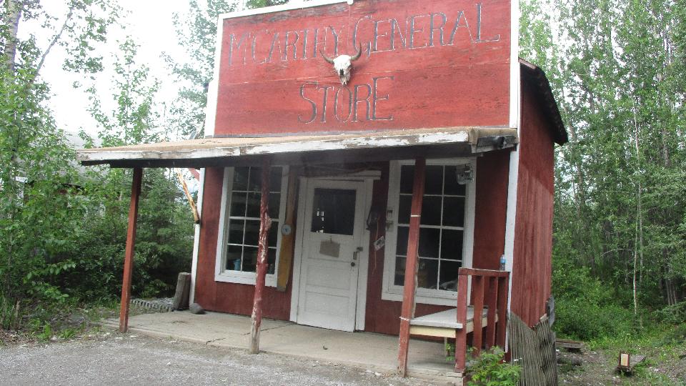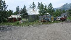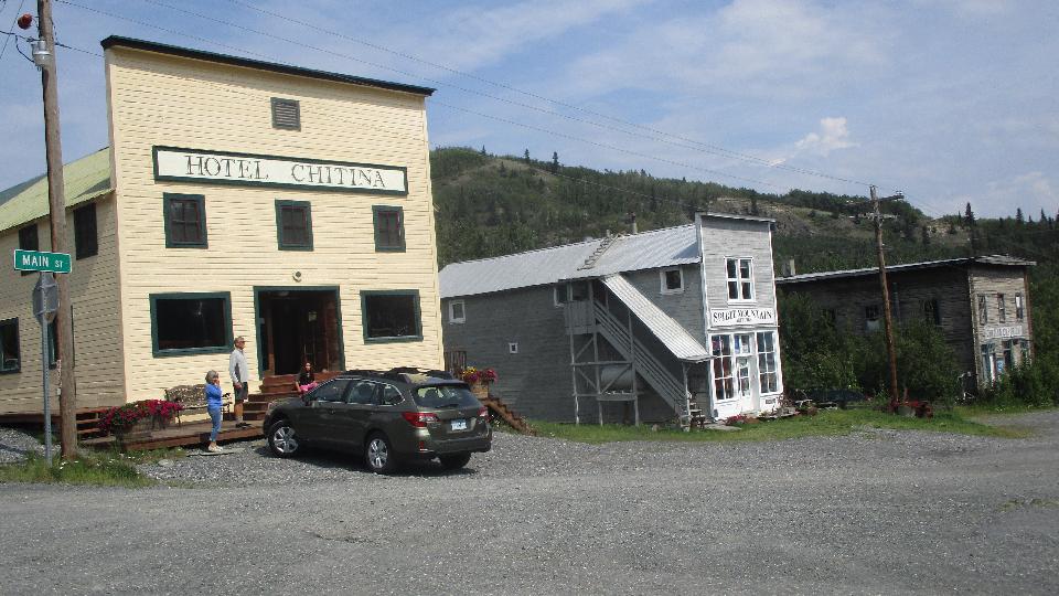 We did finally arrive at McCarthy (almost), and we didn't break the car. Problem there is the vehicle bridge is long gone decades past. Twenty years ago there was a hand operated cable tram across the river. That is now also gone. But there is now a foot bridge in its place. For those not inclined to walk the last mile (which we did), there is a shuttle bus available. Life got cushy here, I suppose to cater to tourists.