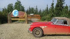 Another 60 miles up we made a fuel stop at Coldfoot. Truck stop, restaurant, post office, motel, and I think a gravel runway for small planes. What you see is what you get. But wait, check this out. The cute gal with the new fur coat had to get her picture taken with the MGA. She got so excited about the car that she forgot to turn on the gas pump. She owns a nice 1978 MGB which is currently in South Carolina, but which she intends to bring to Fairbanks.