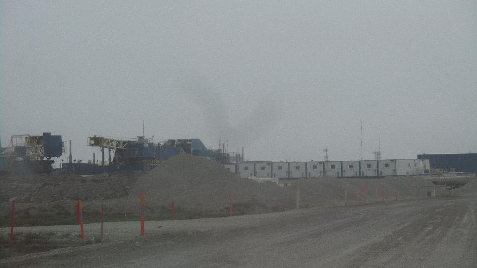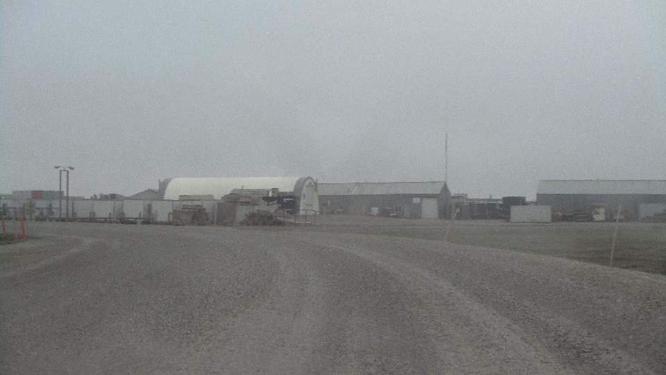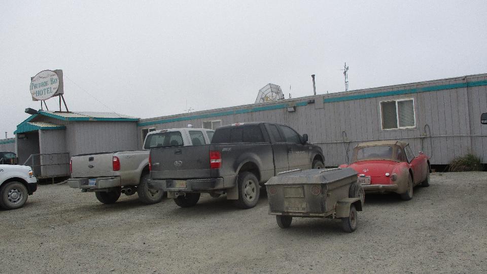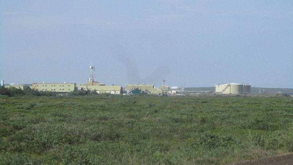 The semaphore style posts along the shoulder of the road are markers to guide the snow plows which give you an idea how much snow they expect here. Occasionally we had a 20 minute delay for one way traffic, and a "Follow Me" escort through a construction zone at a crawl. Eventually we arrived in Deadhorse, 240 miles from the last fuel stop in Coldfoot (I told you to check your fuel gauge).