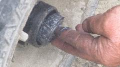 Just before leaving town I noticed the Bearing Buddy missing again on the right side trailer hub. The grease was still clean, and the thin rubber seal washer was still stuck in the grease, so this must have happened just as we were arriving here. I suppose this one was dislodged by one of the large rocks in the road. Not long to hammer another Bearing Buddy in place. This is getting wierd, as I had never lost a Bearing Buddy before, but have now replaced four of them in a few weeks. I wonder if I should lay in a supply of them for future service? Like other service parts, if you carry one around for the rest of your life you may never need it.