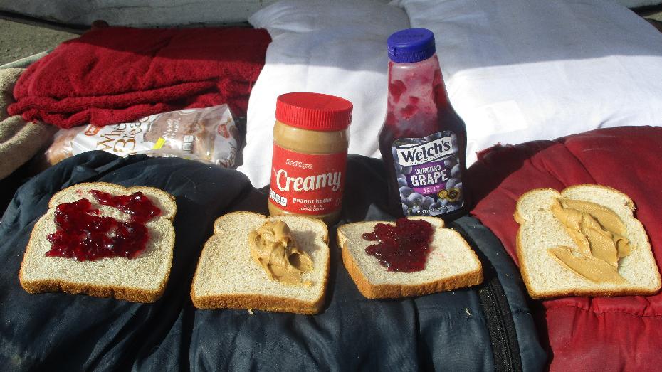 Lady in the post office wanted a picture of the MG for her Wall Of Fame. Then off to fight our way down the Haul Road again. One of the extended construction stops offered the opportunity to fix lunch.