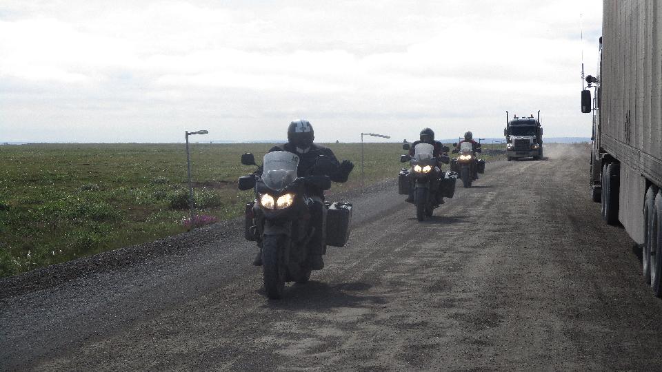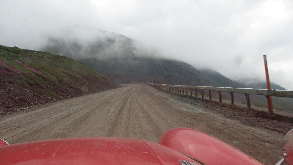 We were seeing quite a number of motorcycles on the Haul Road, as those guys like a challenge. We also saw several bicycles here, which is a bit of a stretch for punishment, but some folks like it. Some of the long steep grades went on for a couple of miles hard on in second gear. We would get a better handle on this temperature issue later.