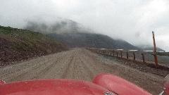 All that done, we casually notice the car had a flat tire as well, not the one that was patched in Deadhorse, but the other side rear. This appears to have road hazard damage in the center of the tread, possibly from the same rock that ultimately did in the trailer tire? Not long to install the spare to be on our way, but notice the spare is a little low on air pressure. Kick myself for that bit of negligence, but the spare hadn't been used for about 15 years. Then running with no spare tire, 24 miles of gravel and 40 miles of pavement to go, being very careful not to screw up another tire on the way out. Also keep it under 45-mph to avoid overheating the tire running with low air pressure. I did stop a couple of times to check, and it did get warm to the touch but not too hot. In the end we survived.