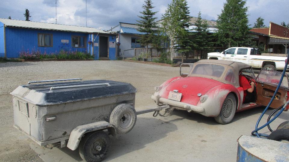 490 miles later back in Fairbanks. Ran the Haul Road south 416 miles in 9-1/2 hours, woo-hoo, a blazing 44-mph average, and we still didn't break anything. Oh, well, there is another crack in the windscreen from a rock, but the glass needed to be replaced anyway due to prior cracks from California heat, so no big deal. I have always had a fond appreciation for the 6-inch ground clearance and relatively rugged construction of the MGA, being able to handle rough roads quite well.