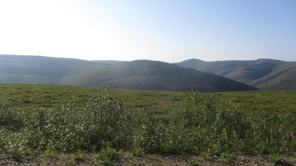Took off to visit Circle, AK today, at the end of another road. Running up the Steese Highway this time, beginning with 40 miles of relatively good pavement. The mountain vistas were nice, but the road soon changed to gravel surface that got worse as we went. For a short distance there were some rather large rocks in the road, one in particular on the opposite side that I made a mental note not to hit or straddle on the way back.